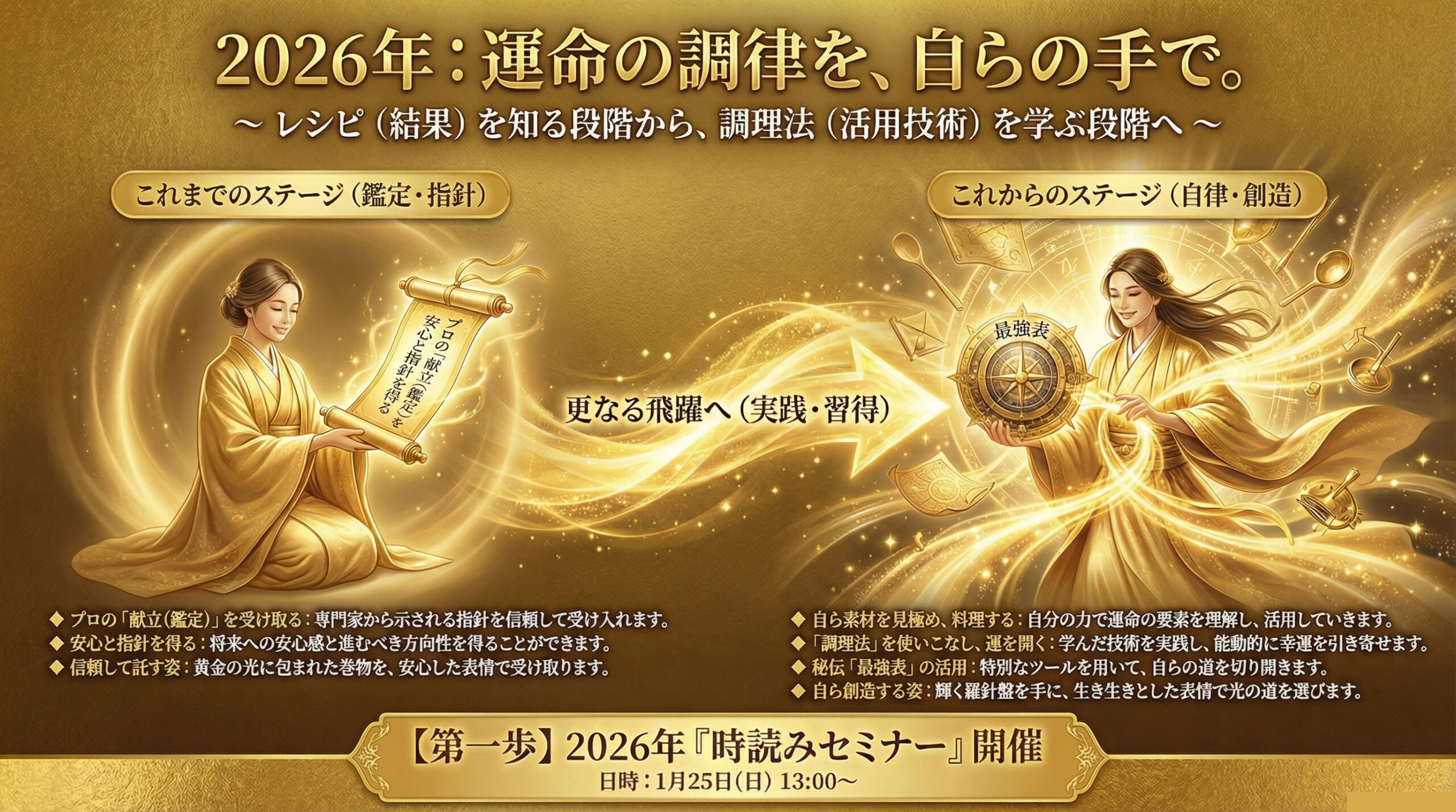 今回立ち上げたオンラインサロンを基盤として、その新たな第一歩となる「2026年 時読みセミナー」を開催します