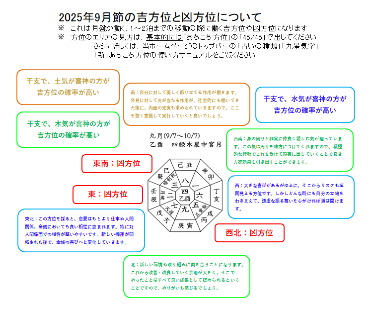 2025年9月節(9月7日~10月7日)の吉方位と凶方位