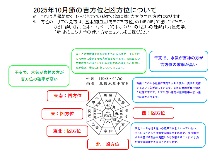 2025年10月節(10月8日~11月6日)の吉方位と凶方位