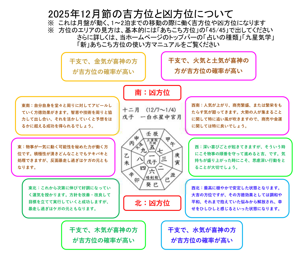 2025年も残りわずかとなりました。12月は何かと慌ただしくなりがちですが、方位と吉日を味方につけて、良い形で一年を締めくくって頂ければ幸いです。