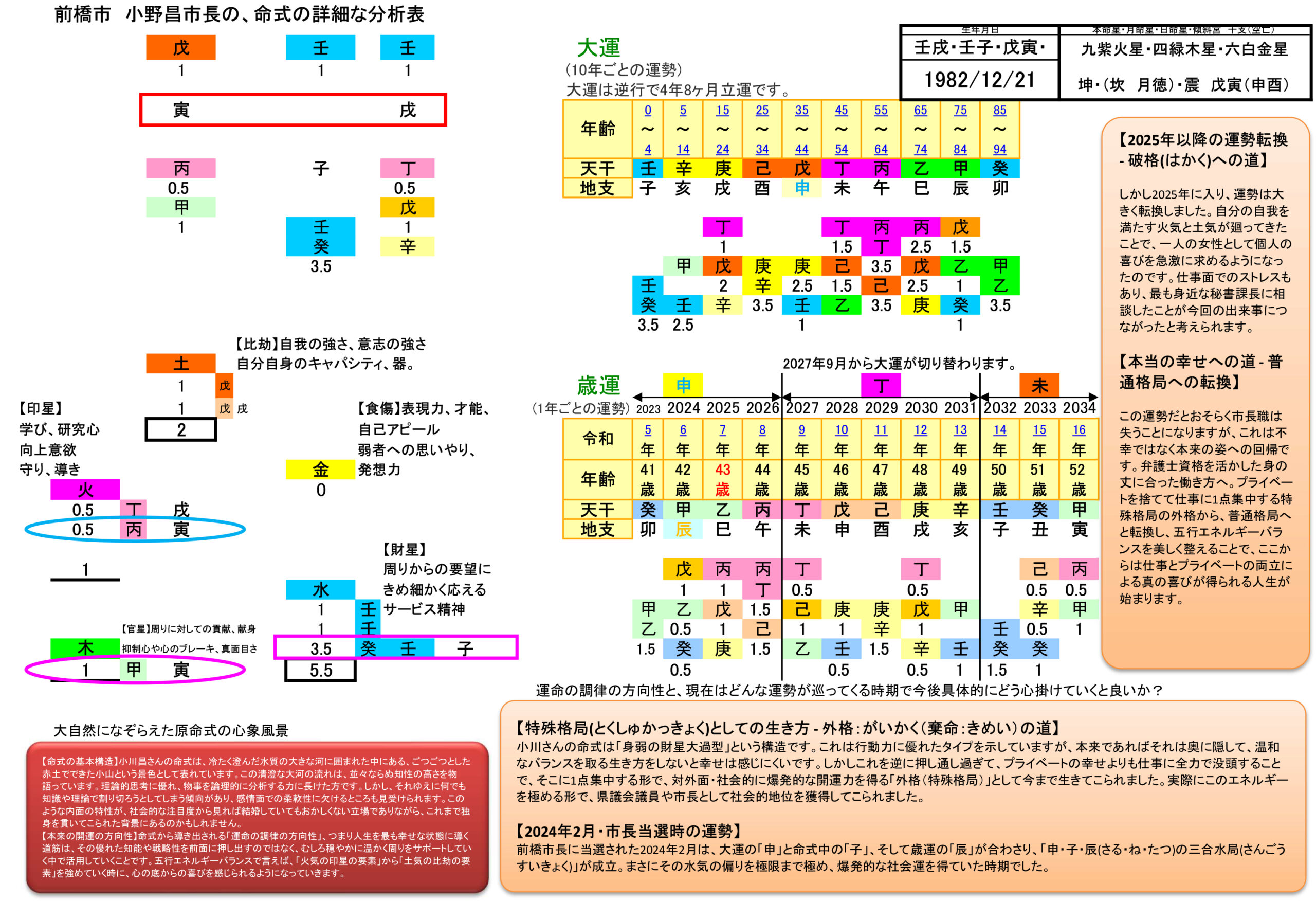 小川市長の詳しい命式分析や、同様の「破格」という現象が起きた永野芽郁さんの事例については、9月末号・5月末号のブログで詳しく述べております。