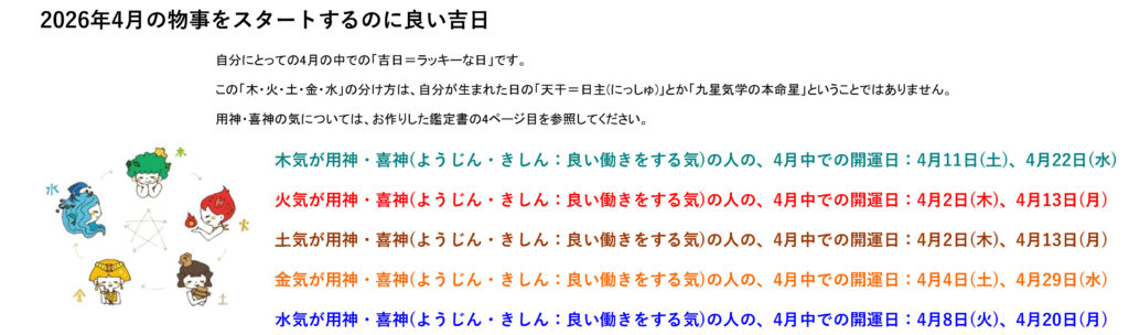 4月の吉日(用神・喜神別)