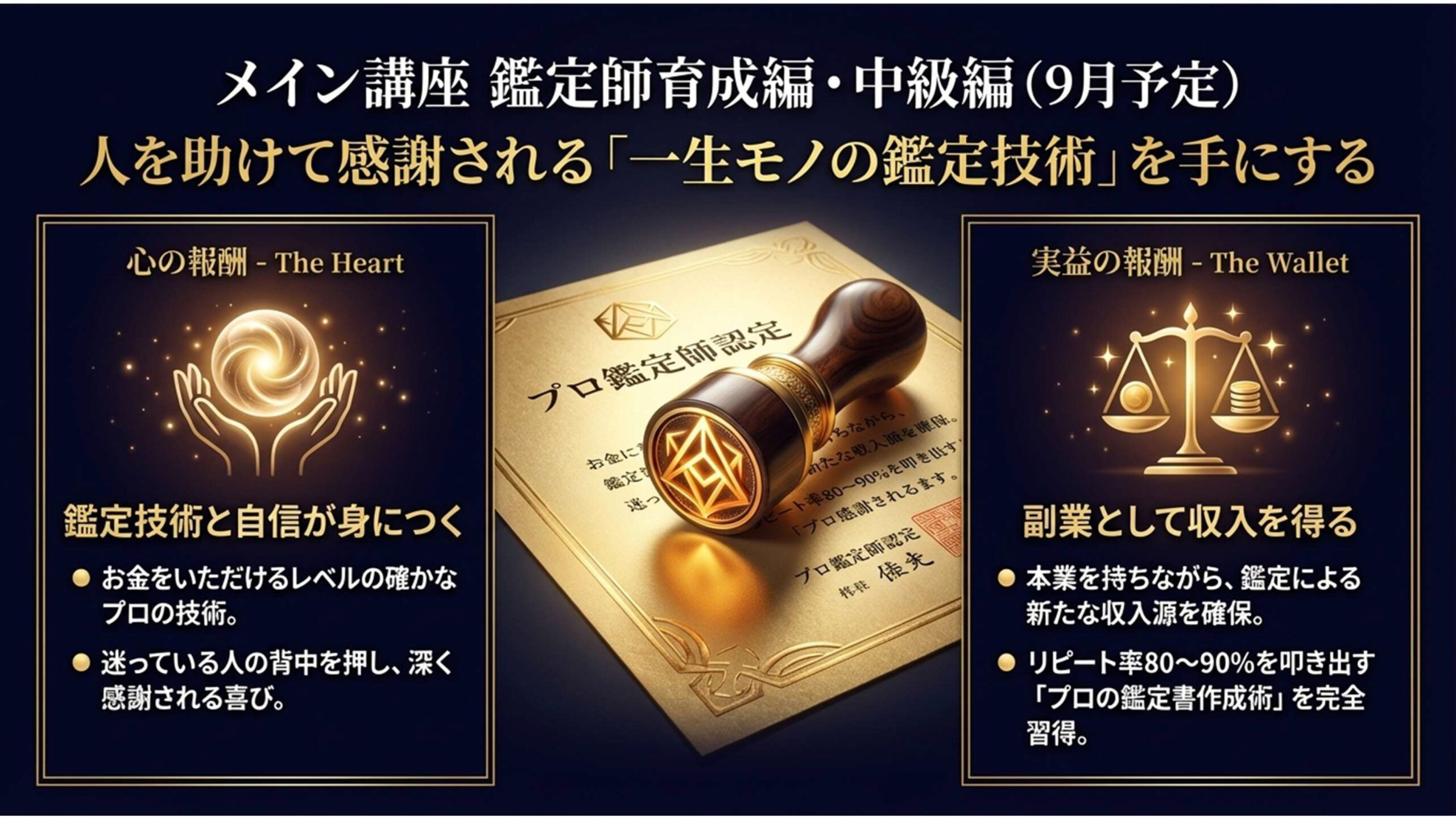 • お客様リピート率80~90%を実現するプロの鑑定書作成術を習得できる