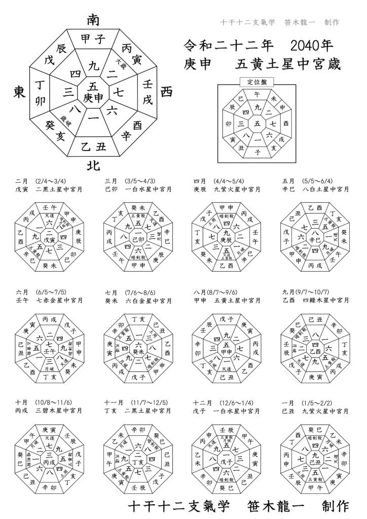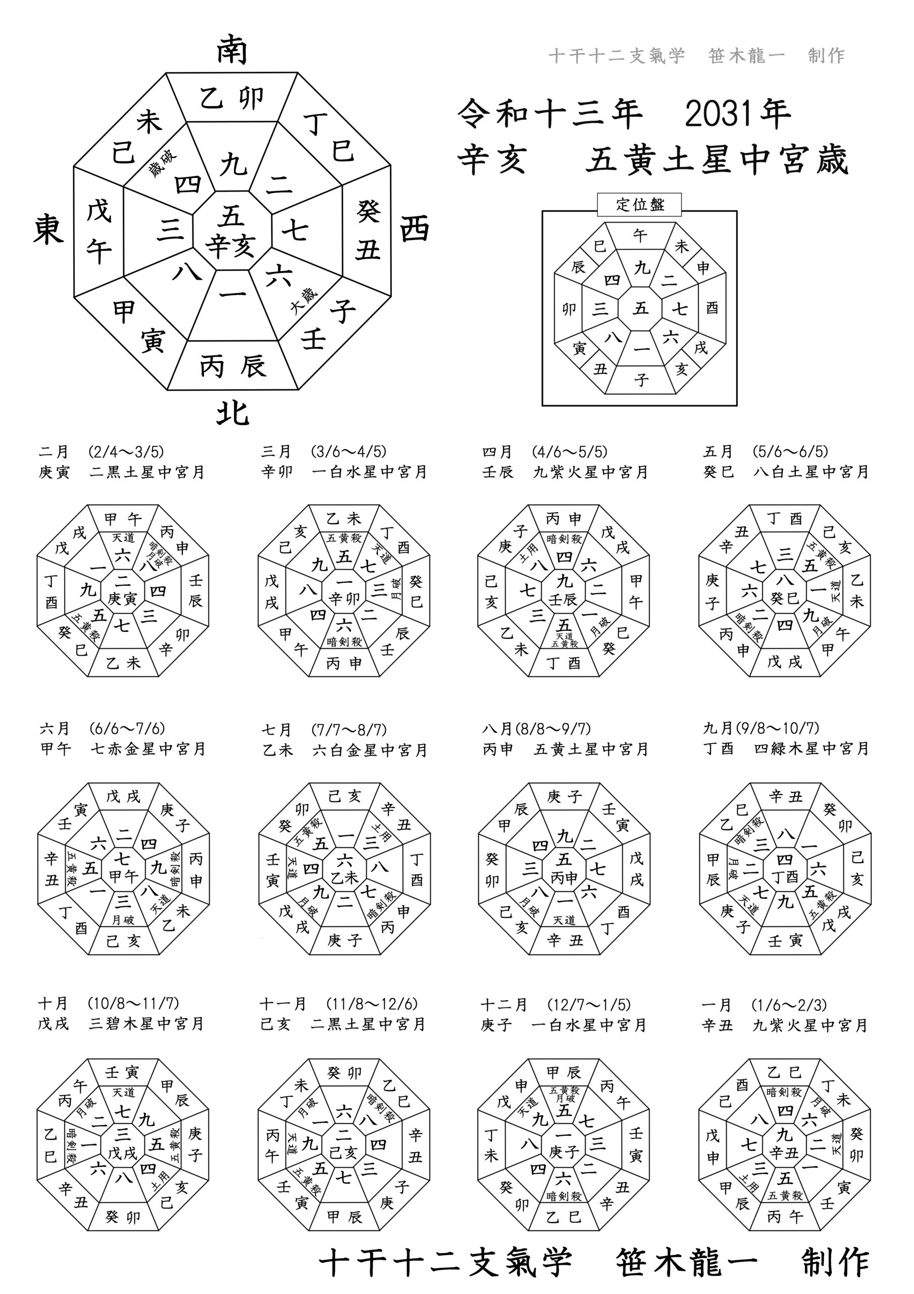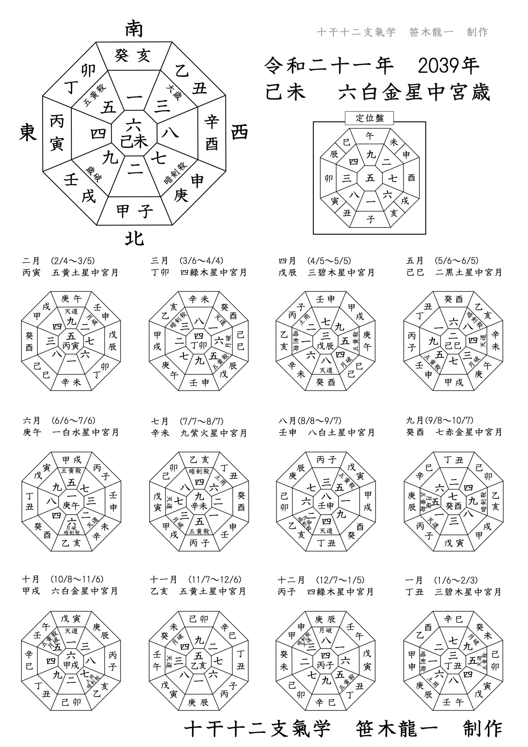 このページでは、2021年~2040年までの十干十二支氣学での暦、十干・十二支・九星が廻座した年盤・月盤表を掲示いたします。