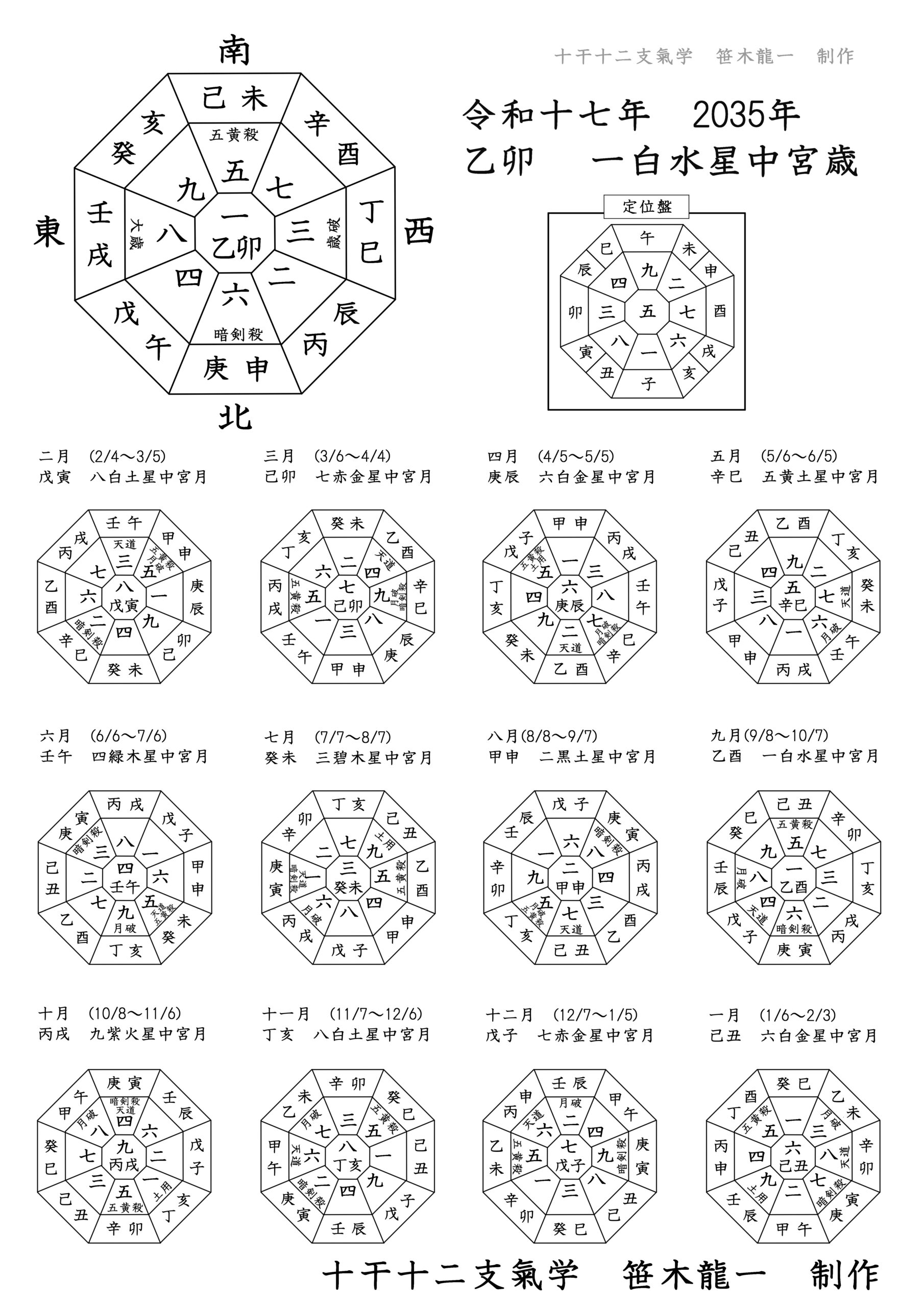 時代の変化とともに、従来の九星だけを見る気学に疑問を感じる方々が確実に増えてきています。そうした中で、干支を正確に把握するためのこの暦は、すべての出発点であり、同時に非常に貴重な資料でもあります。自分にとっての良い干支の星を見極め、それを吉方位採りに活用することこそが、十干十二支氣学の真髄だからです。
